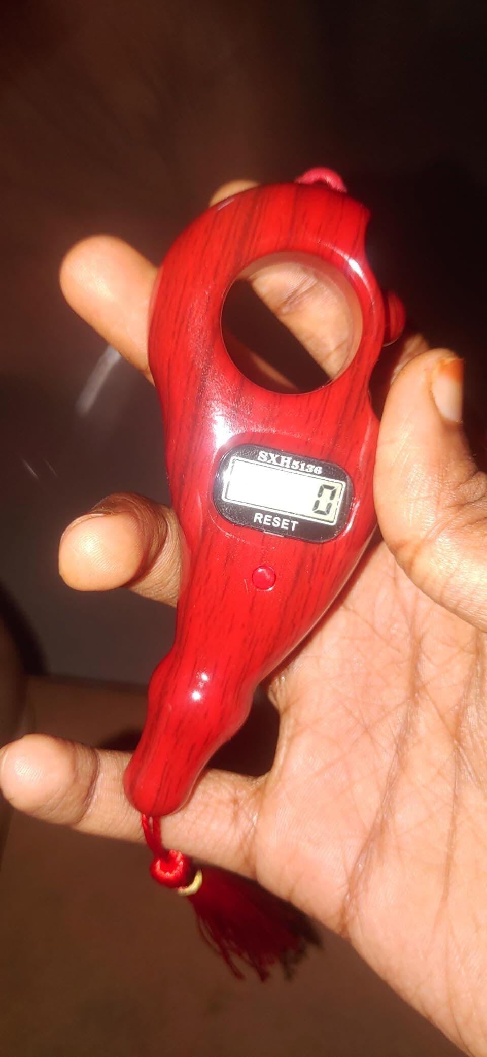 The fish-body design feels natural in hand. The LED display is clear. A valuable tool for spiritual practice.